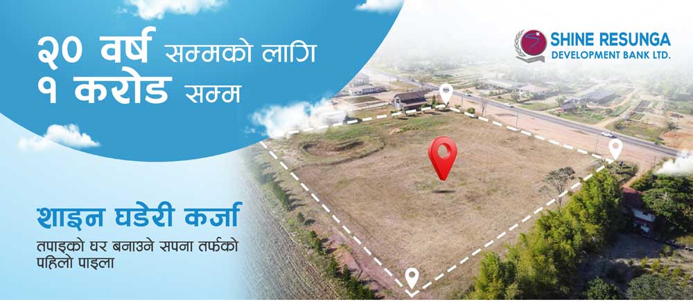 बुटवल । हरेक व्यक्तिको एउटा सपना हुन्छ आफनै स्वामित्वको सुन्दर घर होस् । तर, घर बनाउन घडेरी हुनुपर्यो, जुन सबैको नहुन सक्छ । यसलाई मध्यनजर गरेर शाइन रेसुङ्गा डेभलपमेण्ट बैंकले घर बनाउने सपना बुनेका सबैलाई घडेरी किन्न कर्जा दिने गरी ‘शाइन घडेरी कर्जा’ प्रोडक्ट लन्च गरेको छ ।