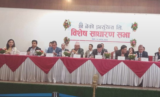 काठमाडौँ । नेको इन्स्योरेन्स कम्पनी लिमिटेडको विशेष साधारण सभा आज (असोज १९ गते, शुक्रबार) सम्पन्न भएको छ । उक्त सभा लिसारा रिसेप्सन, नक्साल काठमाडौँमा सञ्चालन गरिएको थियो ।