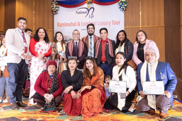 काठमाडौं । नेशनल लाइफ कम्पनीको मासिक योजना अन्तर्गत तोकिएको लक्ष्य पुरा गर्ने अभिकर्ताको उपस्थितीमा कम्पनीले लक्जरी टुर अन्तर्गत नेपालको प्रसिद्धस्थल लुम्बिनी र पाल्पाको रानी महल भ्रमण गराएको छ ।