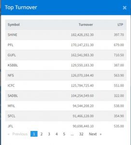.त्यस्तै १६ करोड १५ लाख ८२ हजार रुपैयाँ बराबरको सेयर खरिद बिक्री सहित गुर्खाज फाइनान्स दोस्रो स्थानमा रहेको छ । त्यस्तै उक्त दिन पोखरा फाइनान्सको १४ करोड ४८ लाख ५३ हजार रुपैयाँ, कामना सेवा विकास बैंकको १२ करोड ८९ लाख ४१ हजार रुपैयाँ कारोबार भएको छ ।