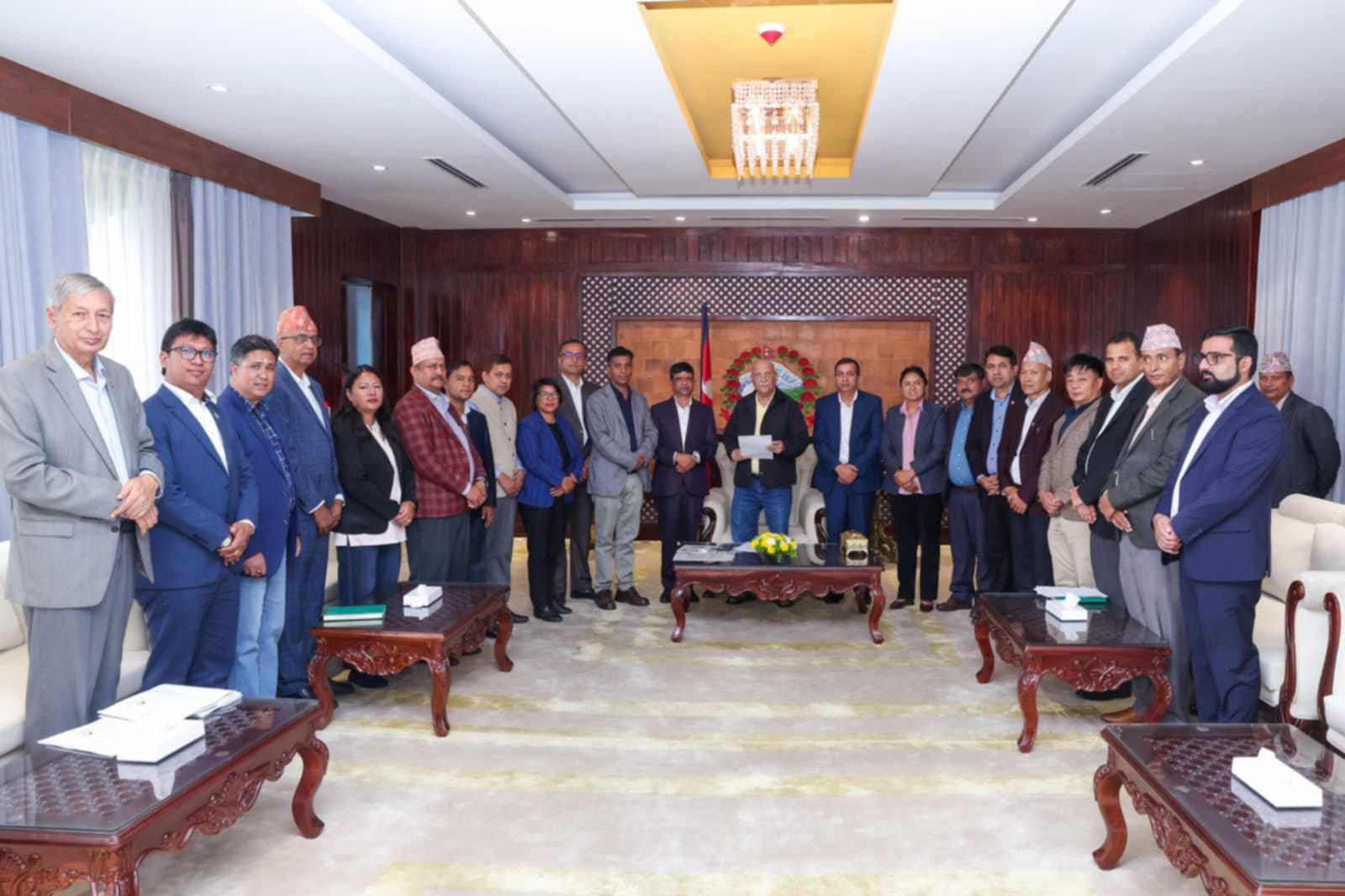 एमालेको जनवर्गीय संगठन नेपाल उद्योग तथा व्यवसायी महासंघले आज प्रधामन्त्री ओलीलाई प्रधानमन्त्री निवास बालुवाटारमा भेटी अहिलेको अर्थतन्त्र सुधार सम्बन्धमा ‘निजी क्षेत्रका साझा सवाल’ नामक ४० पृष्ठ लामो सुझाव पेश गरेको छ ।