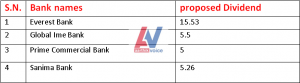 लाभांश वितरणका लागि क्षमतायोग्य तर प्रतिफल घोषणा गर्न बाँकी १० वटा बैंकहरु