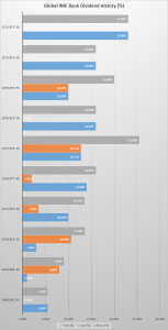 ग्लोबल आइएमई बैंकले सेयरधनीलाई हरेक वर्ष लाभांश वितरण गरेको छ । यस बैंकले अधिकांश वर्ष डबल डिजिटमा लाभांश वितरण गरेको छ । यद्दपि, पछिल्लो समय यस बैंकको लाभांश दर केही घटेको छ । तर, आर्थिक मन्दी, खराब कर्जाको मार, तलरताको कमिका कारण सञ्चालनमा रहेका सबै जसो बैंक तथा वित्तीय संस्थाहरुको खराब कर्जा बढेको छ । जसकारण बैंकहरुको नाफामा केही दबबा सृजना भएको छ । यस्तो प्रतिकुल अवस्थामा पनि ग्लोबल आइएमईले भने सेयरधनीको हात खालि गरेको छैन । तर केही बैंकहरुले गत वर्षको नाफाबाट लाभांश दिन सक्ने अवस्था छैन ।