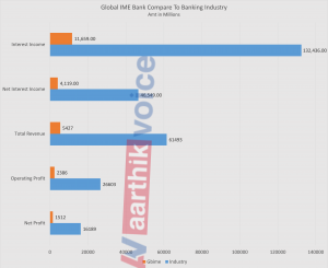 ग्लोबलको व्यापार अरु बैंकहरुको भन्दा धेरै रहेको बुझ्न सकिन्छ । आम्दानीको हिसाबल बैंक दोस्रो स्थानमा आउँछन । सञ्चालन नाफा र खुद नाफा आर्जन गर्नेमा बैंक दोस्रो स्थानमा छ ।