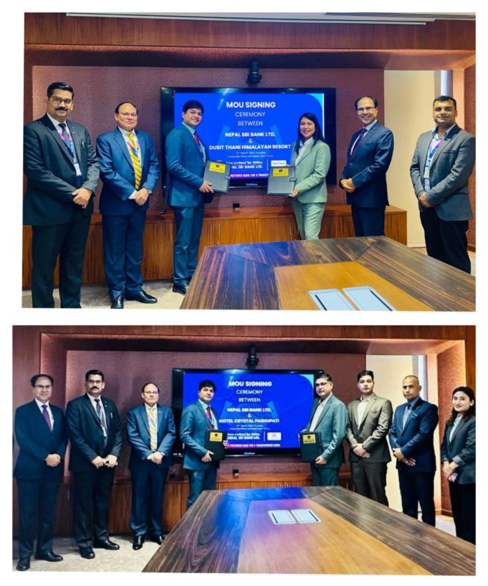 साथै नेपाल एसबिआई बैंक लि. र होटेल क्रिस्टल पशुपति, काठमाडौं बीच पनि बैंकका सम्पुर्ण डेबिट कार्ड र मोबाइल बैंकिङ सेवा प्रयोगकर्ताहरुलाई लक्षित गरी खाध्य तथा पेय पदार्थ र आवास सुविधामा २० ५ सम्म छुट दिने सम्झौता भएको छ । उक्त सम्झौतापत्र बैंकका नायब प्रमुख कार्यकारी अधिकृत तथा प्रमूख वित्तिय अधिकृत, राजेश कुमार पंडा र होटेल क्रिस्टल पशुपतिका निर्देशक (सेल्स एण्ड मार्केटिङ), रोशन सुवाल बीच आदानप्रदान भएको थियो ।