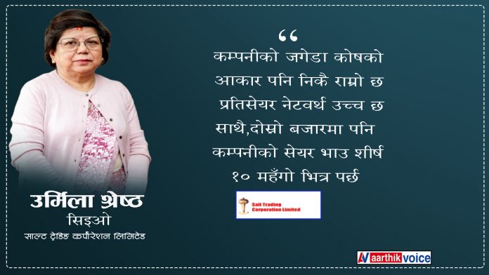 सरकारको लगानी रहेको साल्ट ट्रेडिङ कर्पोरेसनले एक सबल संस्थानको पहिचान बनाएको छ । सरकारी लगानी पनि रहेको सबल संस्थाको सूचीमा साल्ट ट्रेडिङ पनि अग्र स्थानमा आउँछ । कम्पनीले आर्जन गरेको नाफा र आम्दानीले पनि यो कुराको पुष्टि गर्छ ।
