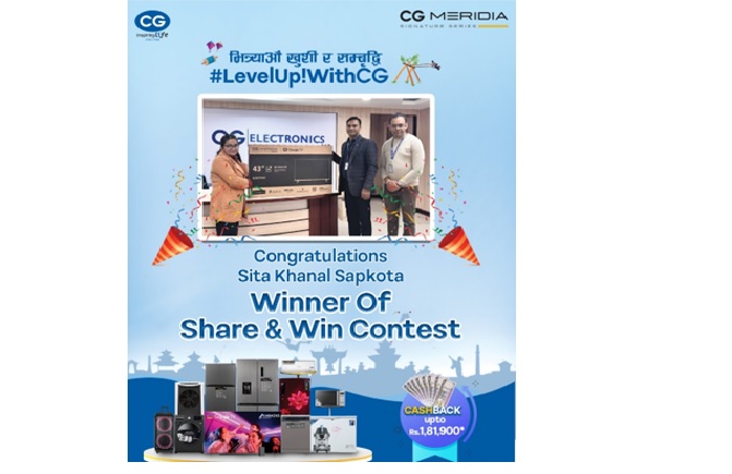 विजेतालाई उक्त टेलिभिजन सीजी ब्रान्ड Home Appliances का प्रतिनिधि श्री भरत प्रसाद साह र श्री सज्ञान ढकालले हस्तान्तरण गर्नु भएको थियो।