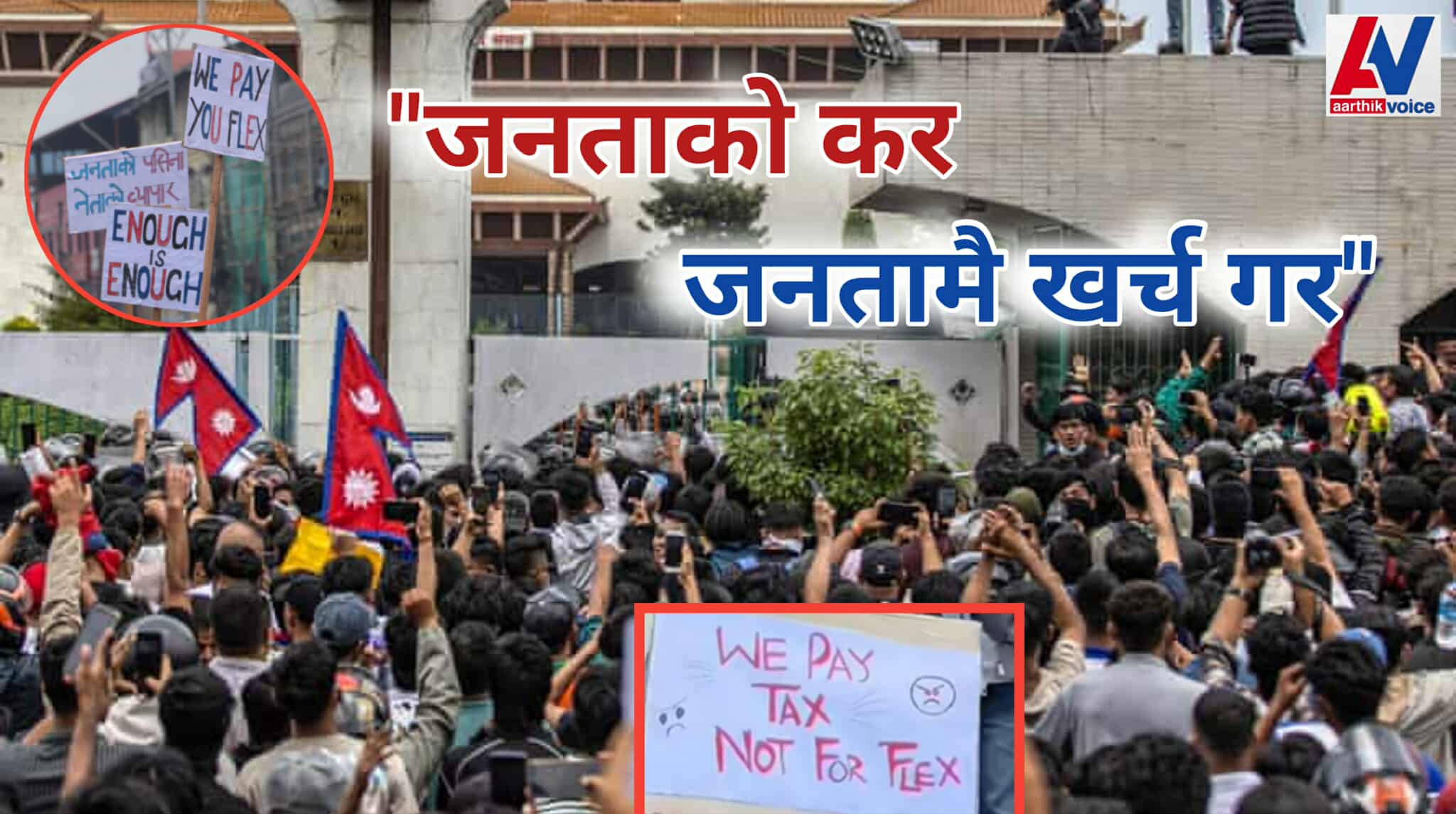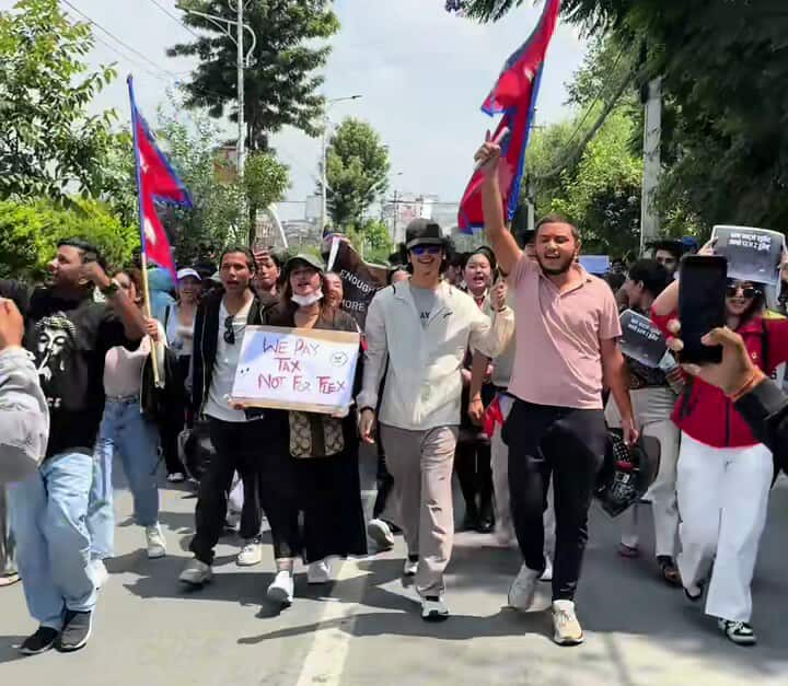 चर्चित टिकटकर आयुष सिंह ठकुरी पनि श्रीमतीसहित We Pay Tax Not For Your Flex लेखिएको पम्पलेट बोक्दै प्रदर्शनमा सहभागी थिए। आन्दोलनका दृश्यहरू देख्दा लाग्छ, जनताले आफ्नो करको हिसाब खोजिरहेका छन्।