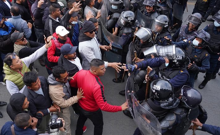 काठमाडौं। नेकपा एमालेका अध्यक्ष केपी शर्मा ओलीको पक्राउको विरोधमा जारी प्रदर्शनका क्रममा एमाले कार्यकर्ता र सुरक्षाकर्मीबीच झडप भएको छ ।
