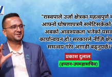 ऊर्जा क्षेत्रलाई मुलुकको समृद्धिको आधारका रूपमा व्याख्या गर्दै उनले ऊर्जा विकासलाई अन्य क्षेत्रभन्दा प्राथमिकतामा राख्नुपर्ने आवश्यकता औँल्याए।