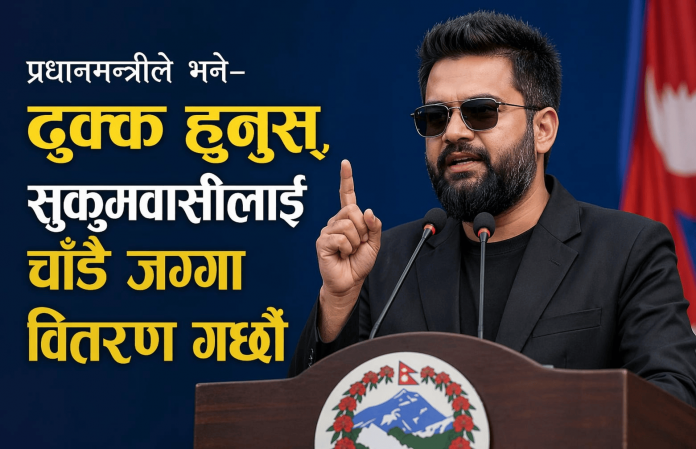 काठमाडौं। प्रधानमन्त्री बालेन शाहले वास्तविक सुकुमवासी बस्तीका समस्या आफू नेतृत्वको सरकारले नै समाधान गर्ने भन्दै ढुक्क रहन आश्वासन दिएका छन्। आज सामाजिक सञ्जालमार्फत उनले एक स्टाटस लेख्दै वास्तविक सुकुमवासीलाई चाँडो जग्गा वितरण गर्ने आश्वासन दिए।