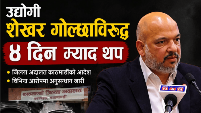काठमाडौं। उद्योगी शेखर गोल्छाविरुद्ध अनुसन्धान गर्न अदालतले ४ दिनको म्याद दिएको छ। गोल्छालाई प्रहरीले बिहीबार काठमाडौंको नक्सालबाट पक्राउ परेको थियो।